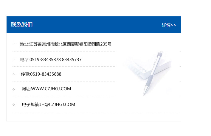傳真:0519-83435688    郵編:213135    網址:WWW.czjhgj_com.sjzhxys.com    電子郵箱:JH@czjhgj_com.sjzhxys.com